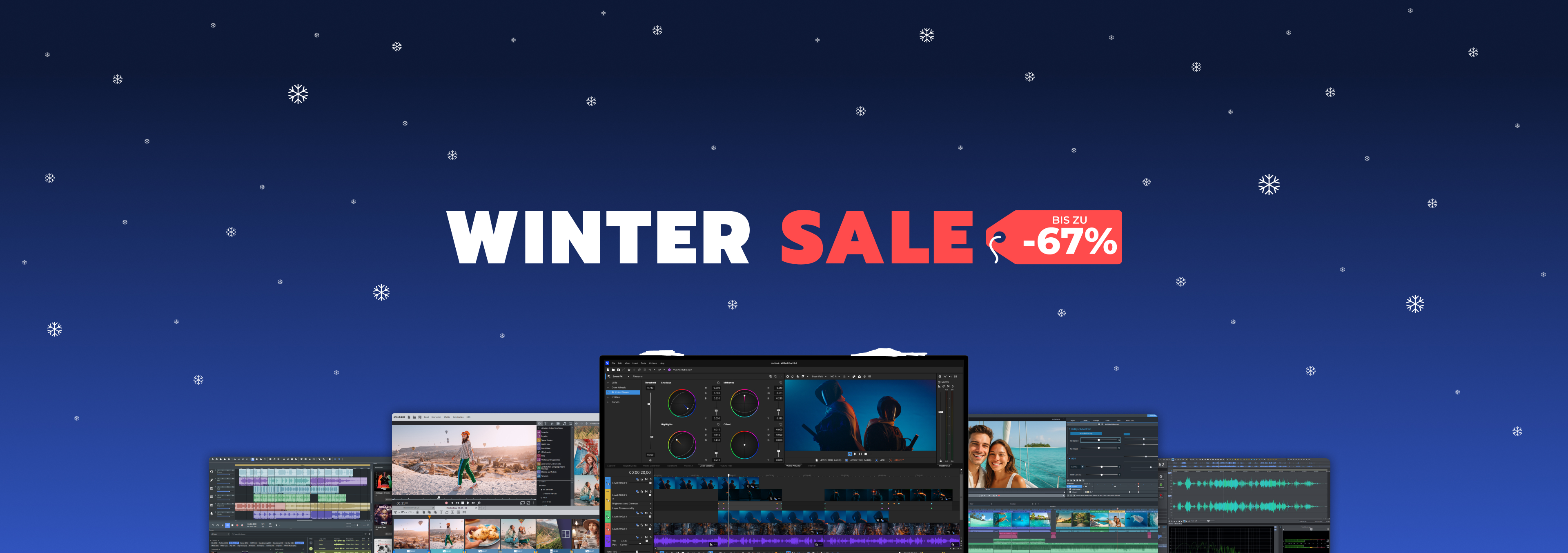 Zum Winter Sale gibt es alle Videoschnittprogramme zu besonders günstigen Preisen. Hier findest du die passende Videosoftware für YouTube-Content, Urlaubsvideos oder professionelle Filmproduktionen.