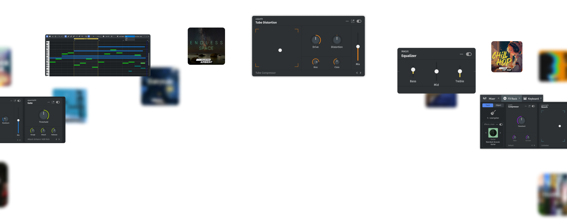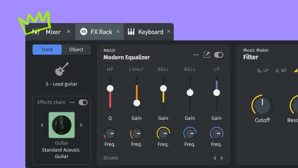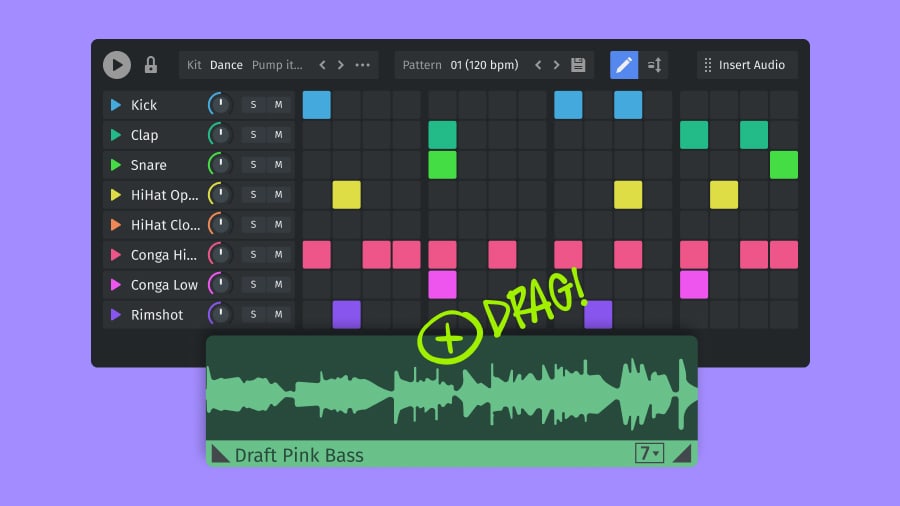 Discover the easiest way to create music in a DAW. Pick sounds from any genre, drag and drop them into your track, and let Music Maker mix it all for you.