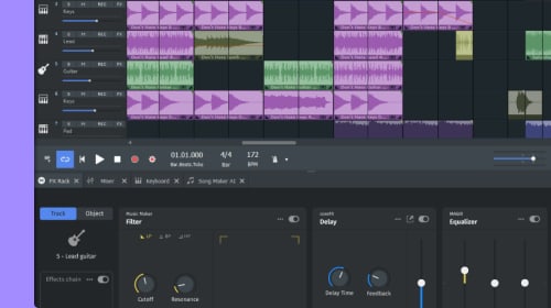 Music Maker is easy-to-use music production software for beginners that lets you bring your musical ideas to life. With this music program, you can create your own songs and beats, make music with virtual instruments and loops, add effects, and arrange tracks—all in one intuitive interface.