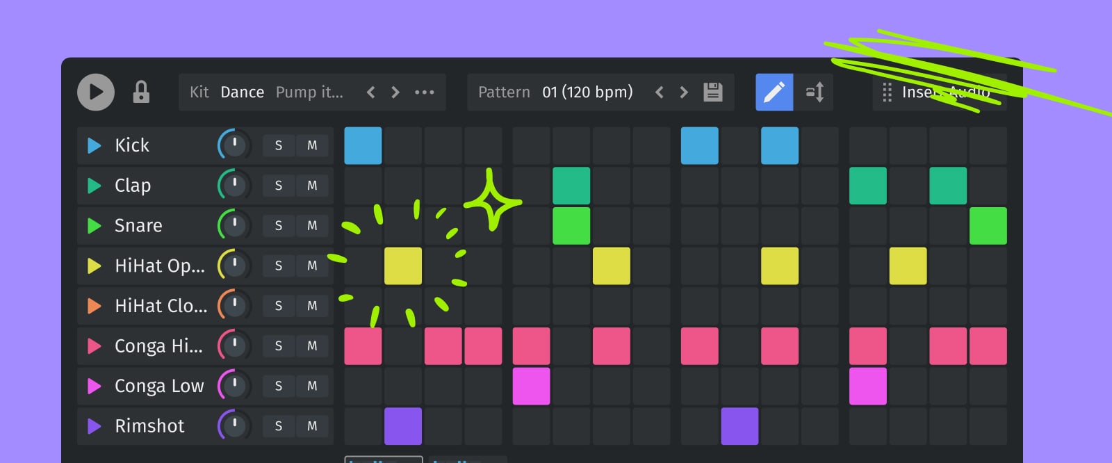 Make killer beats, fast and easy. With simplified knob controls and an intuitive, color-coded interface, creating banger beats is as intuitive as putting on shoes.